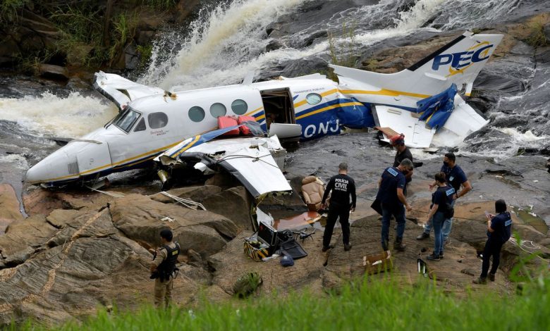 Avião é retirado do local onde caiu em Minas, matando cinco pessoas