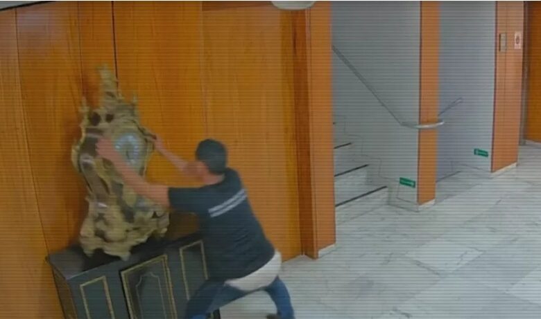 Câmera de segurança flagrou destruição de relógio histórico e quadro no Planalto