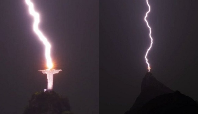 Cristo Redentor é atingido por raio