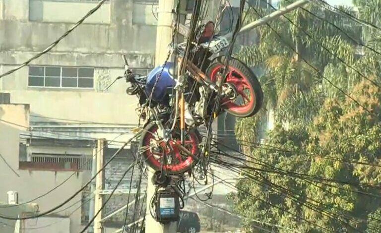 Como a moto foi parar pendurada no poste? pic.twitter.com/uofylen8Nr— Azael Pompeu (@PompeuAzael) July 22, 2024