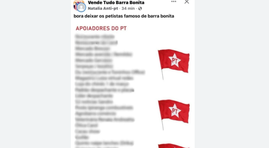 Em decisão publicada nesta sexta-feira (11), a Justiça de São Paulo deu 48 horas para que o Facebook remova um post que sugere o boicote a comerciantes de Barra Bonita (SP), que teriam votado no Partido dos Trabalhadores (PT), na última eleição presidencial.