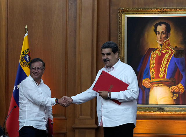 “Continuaremos nessas discussões, debates e reuniões de uma irmandade que nunca deveria ter sido rompida”, concluiu Petro no comunicado conjunto, apertando a mão de Nicolás Maduro.