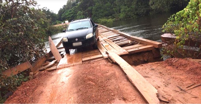 A ponte se encontra em condições precárias de trafegabilidade, com trechos submersos, tornando a travessia arriscada tanto para pedestres quanto para motociclistas e veículos leves. O uso de ônibus, vans e caminhões neste trecho é totalmente desaconselhado.