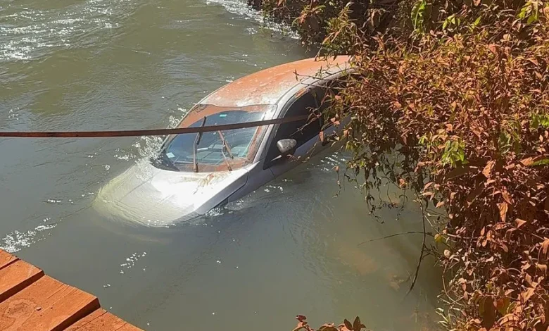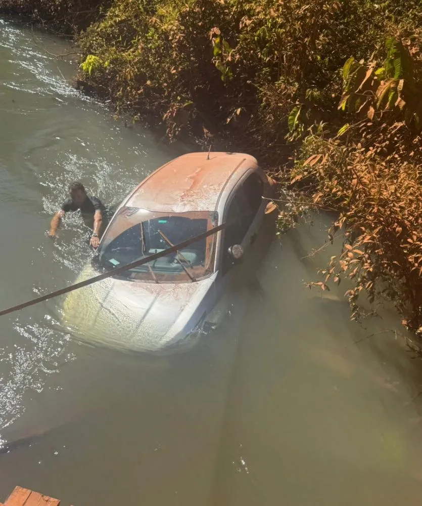 Condutora que trafegava na MT-423 perde o controle do veículo e cai no córrego 1002. Felizmente ninguém saiu ferido