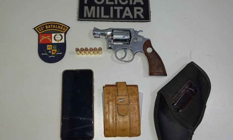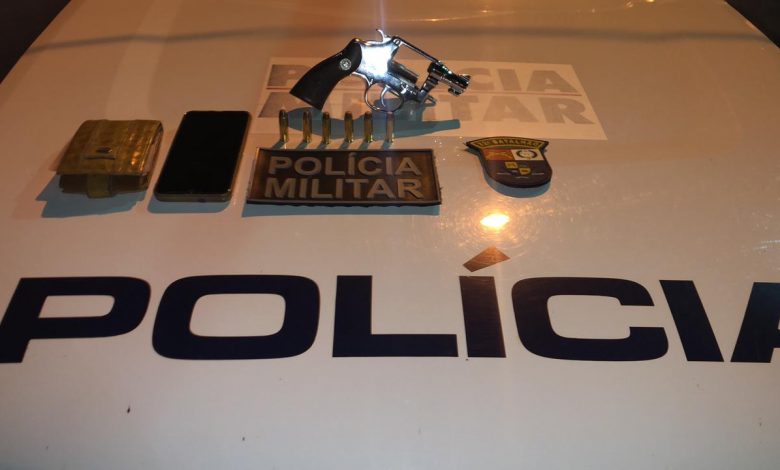 Diante da informação, a Polícia Militar deslocou até o referido local, vindo a visualizar o suspeito, momento em que o mesmo ao ver a viatura policial evadiu-se para um local com pouca luminosidade para tentar dispensar o armamento, porém, a GUPM logrou êxito em realizar a abordagem do suspeito, vindo a confirmar que o mesmo estava em posse de um revólver cal. ’38’ da marca Taurus, N°(……), com 6 munições intactas em seu tambor.