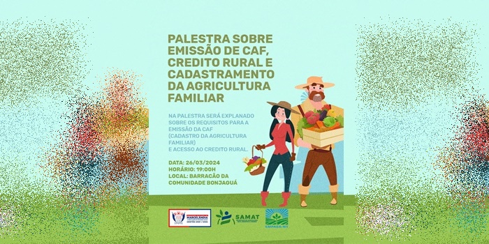 A EMPAER e a SAMAT Convida a todos os produtores do PA Bonjagua e região para uma palestra sobre Emissão de CAF/ Crédito Rural e o Cadastramento Municipal dos Agricultores Familiares!