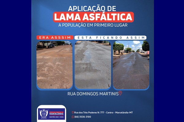 As ruas da cidade de Marcelândia, estão recebendo um novo revestimento asfáltico. A ação é desempenhada pela Prefeitura municipal, por meio da Secretaria de Infraestrutura e Obras, nas última semanas, varias ruas da cidade receberam a lama asfáltica.