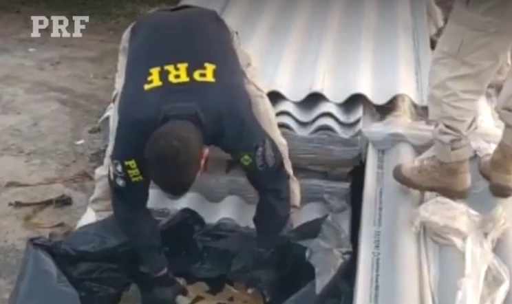 Os agentes fizeram uma inspeção em uma Unidade Operacional da PRF. Eles encontraram as drogas embaixo das telhas. O carregamento, o veículo e o motorista foram levados para a Polícia Civil.