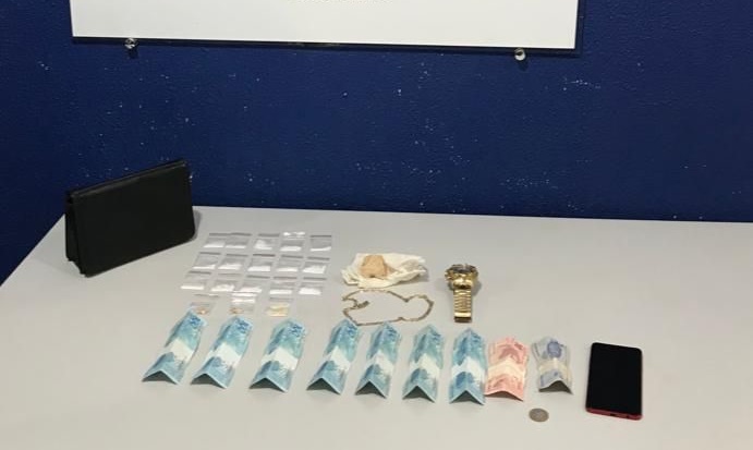 A Polícia Militar em patrulhamento pela avenida Argentina no Bairro Mãe de Deus avistou uma motocicleta com duas pessoas, ao realizar abordagem no suspeito 01, foi encontrado no bolso do shorts um pedaço de substância análoga a pasta base de cocaína em ato contínuo ao verificar a bolsa do suspeito 02, foi encontrado vários papelotes de substância análoga à cocaína. Diante dos fatos, os suspeitos foram encaminhados para delegacia civil sem lesões corporais juntamente com material apreendido para as demais providências que o caso requer.