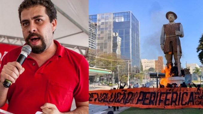 Nesta quinta-feira (18), o pré-candidato do PSOL ao Governo de São Paulo, Guilherme Boulos, disse que vai entrar com uma ação popular pedindo que a Prefeitura de São Paulo, gestão Ricardo Nunes (MDB), remova a escultura do Touro de Ouro instalado em frente à Bolsa de Valores brasileira, a B3, na região central da capital paulista.